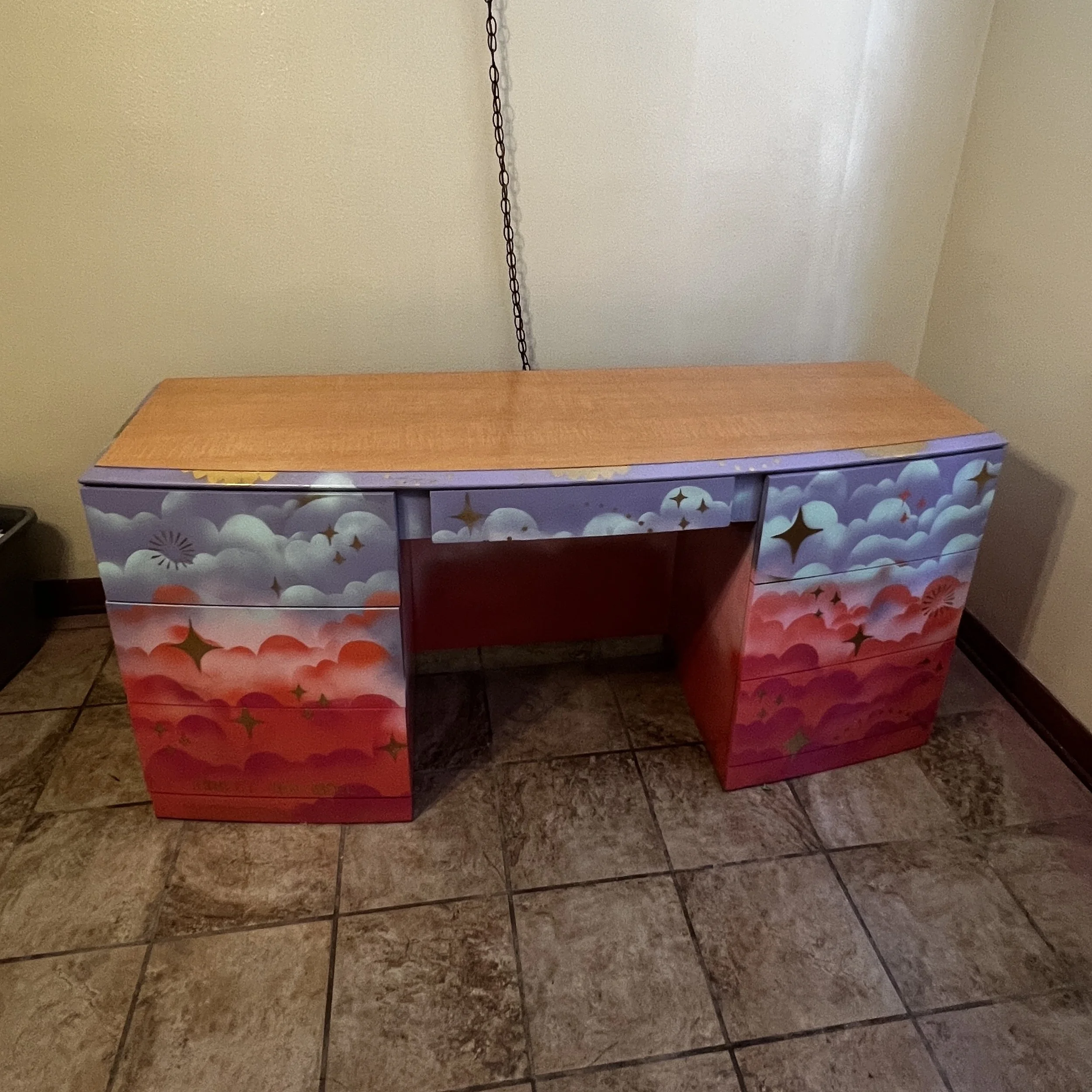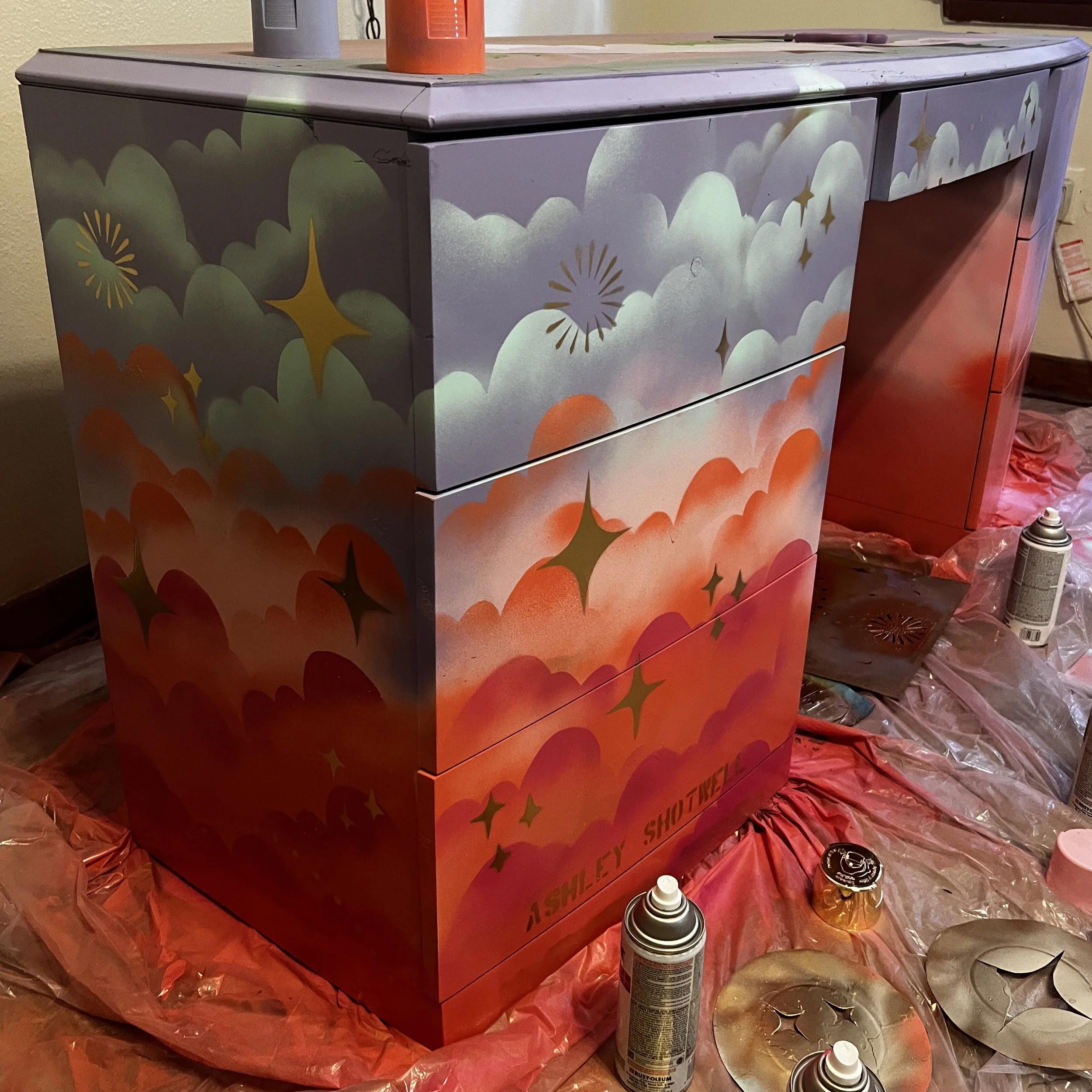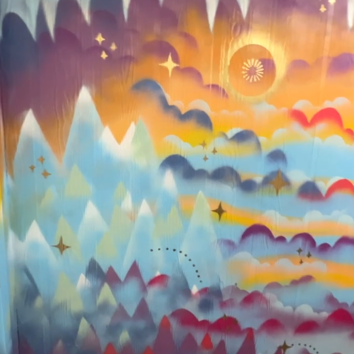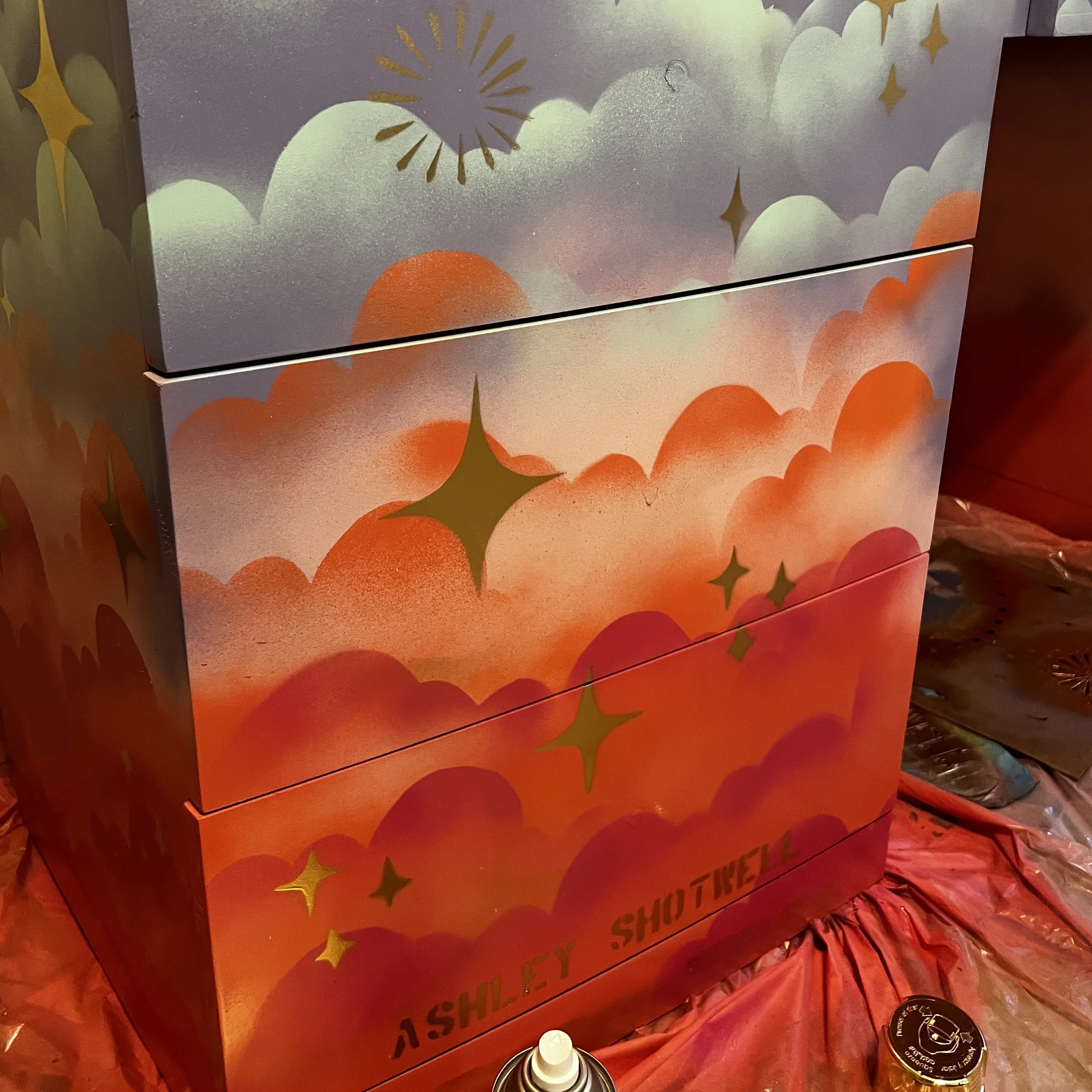 Here you’ll find a collection of my mural and large painting projects, showcasing my signature blend of bold and colorful spray paint work with custom-made stencil details. I’ve brought this style to all kinds of surfaces - walls, furniture, even cars - and included photos of some pieces over time so you can see how beautifully they hold up. If you’re dreaming up a custom mural, fill out the contact form to your right and share your project details and timeline. I’ll be in touch with a personalized quote to help bring your vision to life!